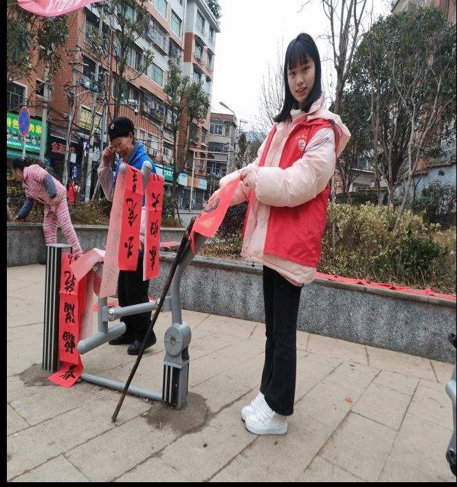 本网讯 交通工程学院 图文/陈春为弘扬“奉献、友爱、互助、进步”的志愿服务精神,增强新时代学生社会责任感和使命感。2025年212-14日交通241班团支书陈春前往毕节市七星关区北门社区参与志愿服务活动,与社区居民一起恭祝新春。