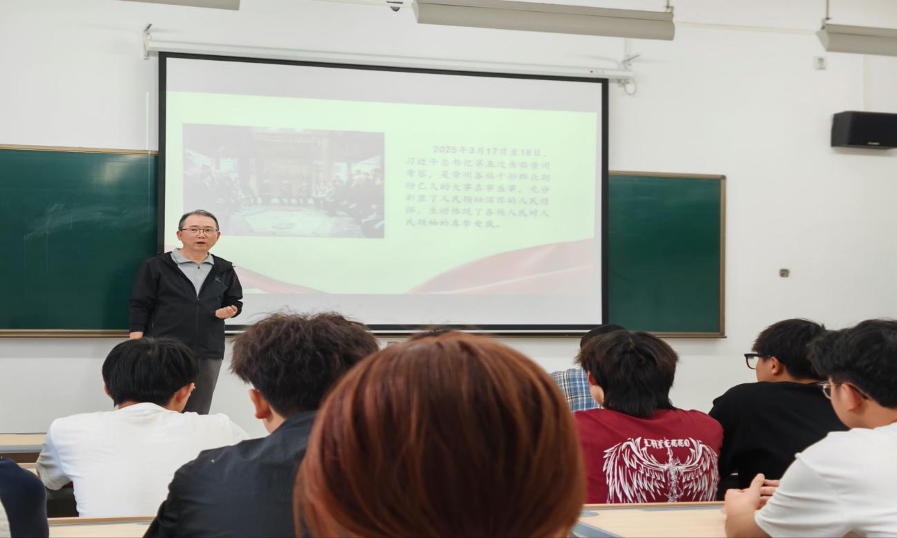 深入学习贯彻习近平总书记贵州考察时重要讲话精神,落实立德树人根本任务,让同学们进一步深刻感悟总书记的对贵州人民的关怀厚爱和殷切期望,202559日下午,黄念庆书记和葛鹏老师组织交通241班全体同学在敏学楼413教室开展深入学习贯彻习近平总书记在贵州考察时的重要讲话精神“理论宣传二人讲”宣讲活动。