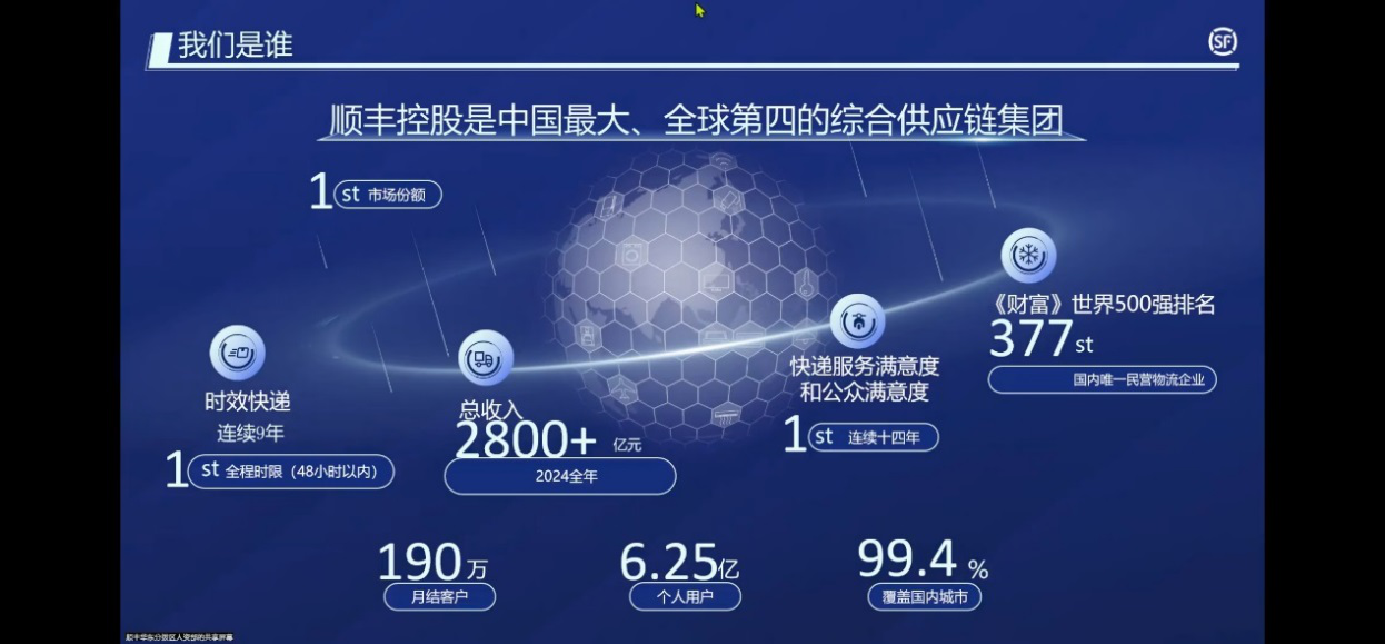 招聘宣讲会上,公司人力资源部曹经理创新采用线上实时屏幕共享形式,全方位展示了公司的智能化设施,包括自动化分拣中心、跨境数字清关系统等,让屏幕另一端的毕业生们仿佛身临其境,直观感受到公司的先进技术和高效运营模式。随后,曹经理详细介绍了国际货运专员、智慧仓管系统工程师、物流算法优化师三类核心岗位需求,为毕业生们明确了职业发展方向。