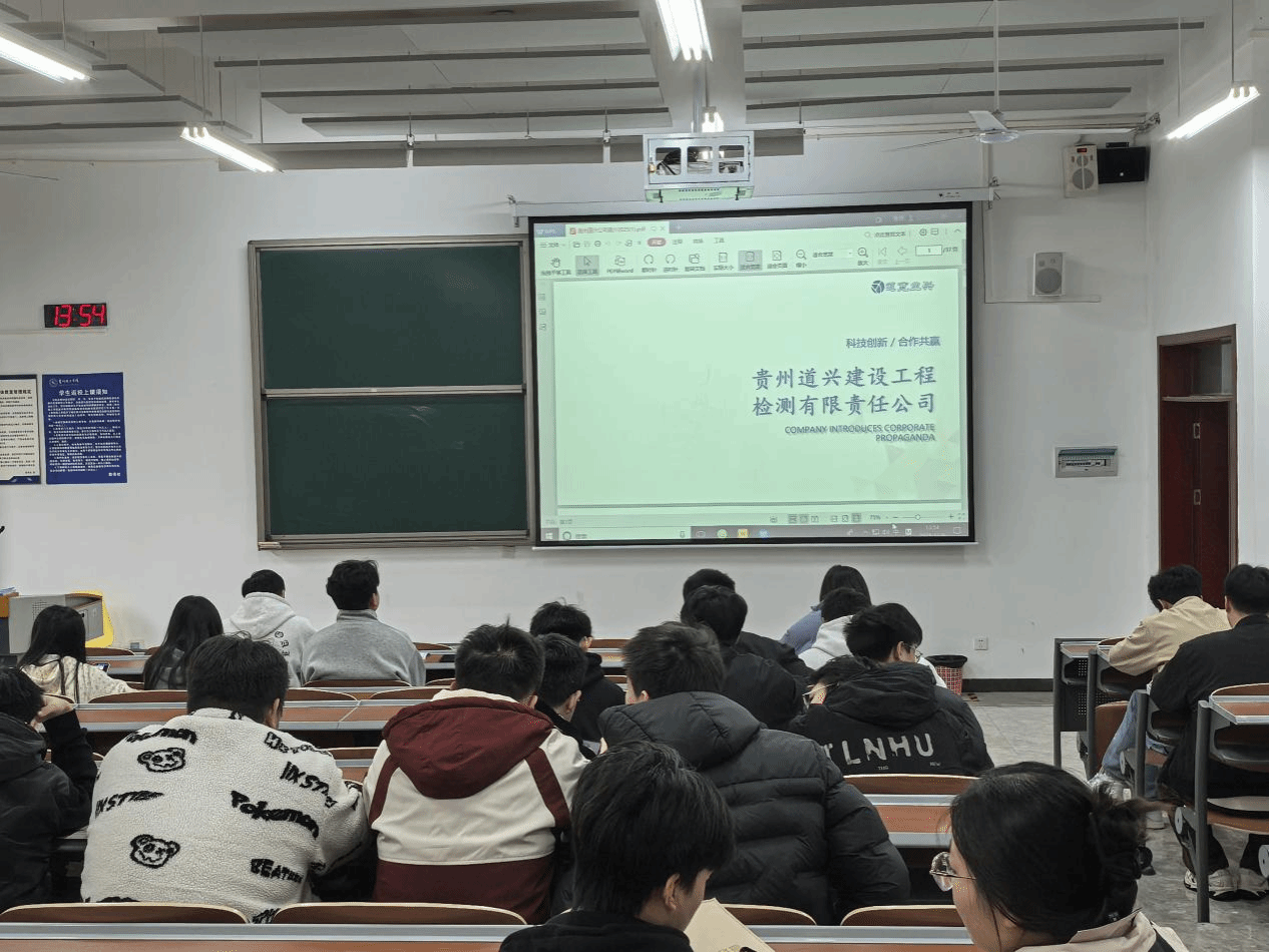 本网讯(图/文 交通工程学院 谭大豇)11月6日14:00,贵州道兴(黔南)建设工程检测有限责任公司专场招聘会在中国足球彩票:开物楼1107教室顺利举行。本次招聘会主要面向我院2026届毕业生,旨在为同学们搭建优质就业对接平台,助力精准就业。