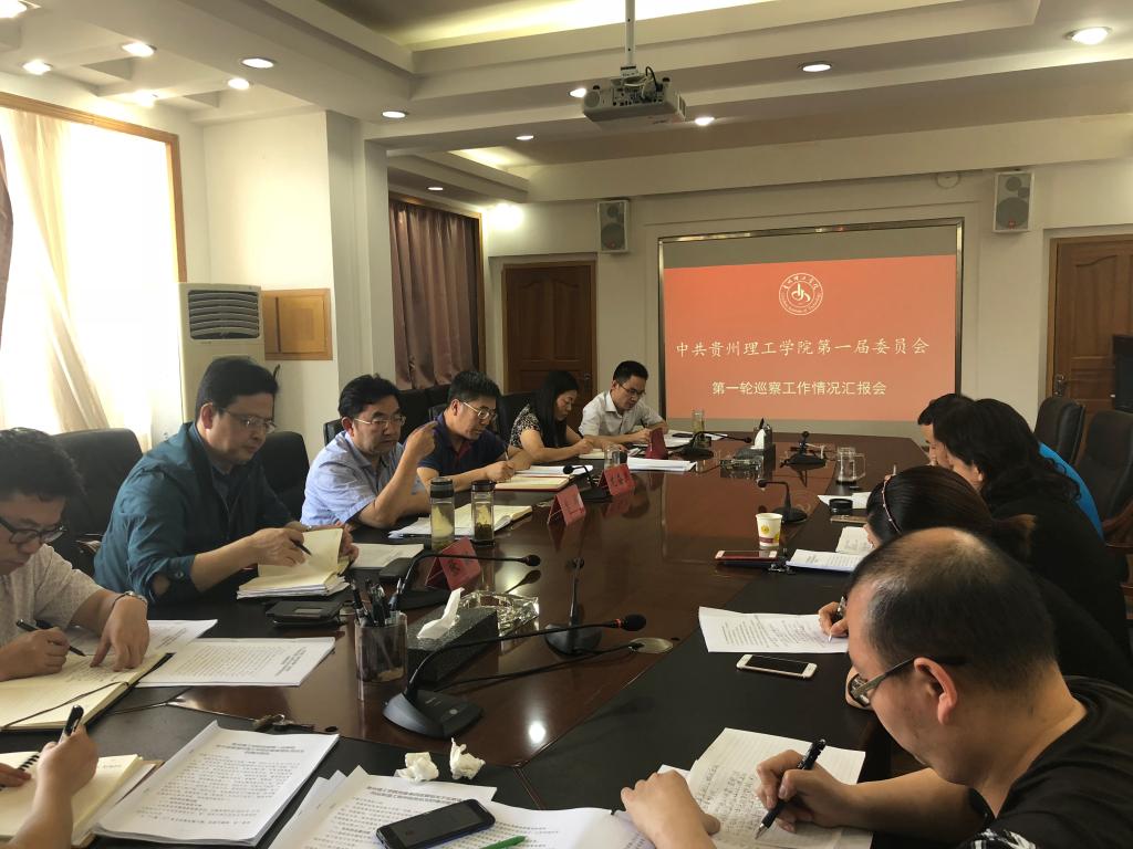 2018年6月7日,贵州理工学院第一届党委第一轮巡察工作情况汇报会在行政楼第一会议室召开。校巡察领导小组组长、校党委书记曾羽,校巡察领导小组组长、校党委副书记、校长龙奋杰,校巡察领导小组副组长、校党委副书记张波出席会议。