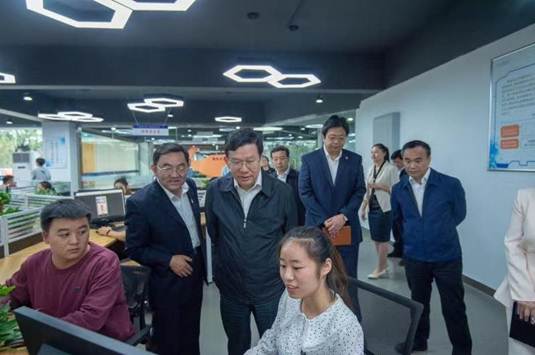 随后,夏红民一行走进学校创新创业中心,观看了学生围绕廉政文化主题开展的创意设计活动,并参观了3D打印、机器人设计、电子智能汽车制作、无人机编程设计等创新创业实验室。夏红民热情地鼓励同学们,不仅要学好专业知识、更要领悟思想内涵,不仅要提升技术本领、更要培养综合素质,不仅要筑牢扎实基础、更要实现终身学习,只有将“学到的”和“热爱的”相统一,才能激发出更大的创新创造热情。
