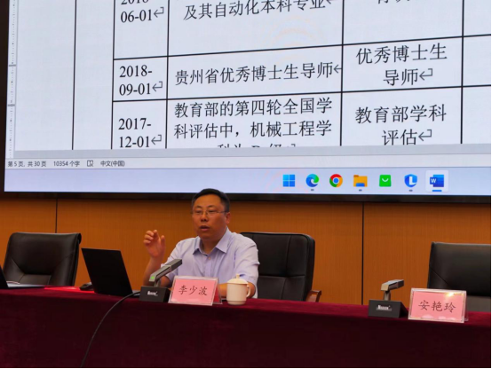 安艳玲总结发言,首先对李少波教授的精彩报告表示感谢,她强调教学成果申报涉及到人才培养的全过程,要结合学校实际与特色,在“新工科”人才培养模式、一流专业建设、一流课程建设、体美劳育等方面深度挖掘优秀成果,并激励各教学单位积极投身教学改革研究,发挥自身优势,积极总结和申报教学成果,争取在教学成果奖申报工作中取得新的突破。