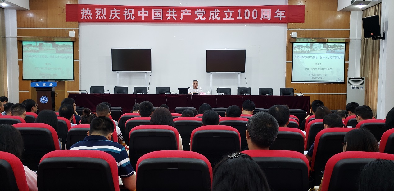 讲座中,曹显兵教授从当前国家政策要求,以概率统计为例,介绍了课程的教学主线、重点、难点与教学形式,围绕问题驱动, 激发学生求知欲望;启发教学, 调动学生积极思考;深化问题, 开拓学生创新能力课程的教学案例进行分享,并通过案例阐述了如何发挥课堂教学主渠道、课程建设主战场、教师队伍主力军的作用,以及学院如何以课程建设为核心,推进专业建设内涵质量的提升。