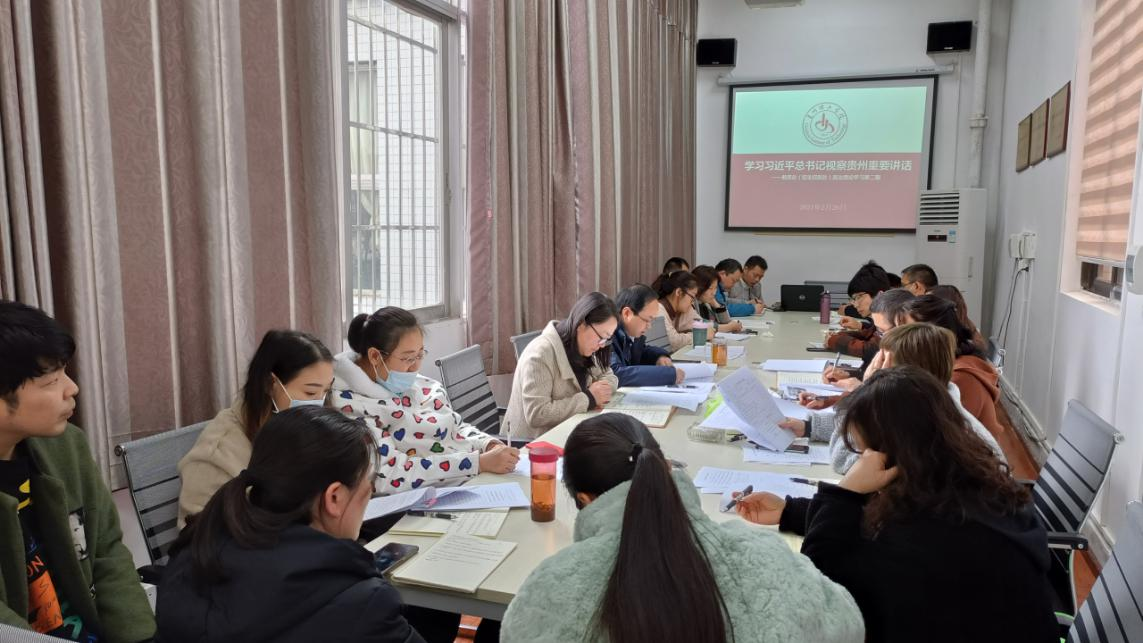 会上,同志们围绕学习内容开展了深入的交流讨论,纷纷表示在今后的工作学习中,以总书记的讲话精神为前进方向和根本遵循,对标习近平总书记对贵州发展提出的总体要求及“十四五”时期贵州发展“一二三四”的工作思路,根据学校“十四五”教育事业发展目标,在教育教学工作中践行闯新路、开新局、抢新机、出新绩,全力以赴推进习近平总书记重要讲话精神在学校落地生根、开花结果。