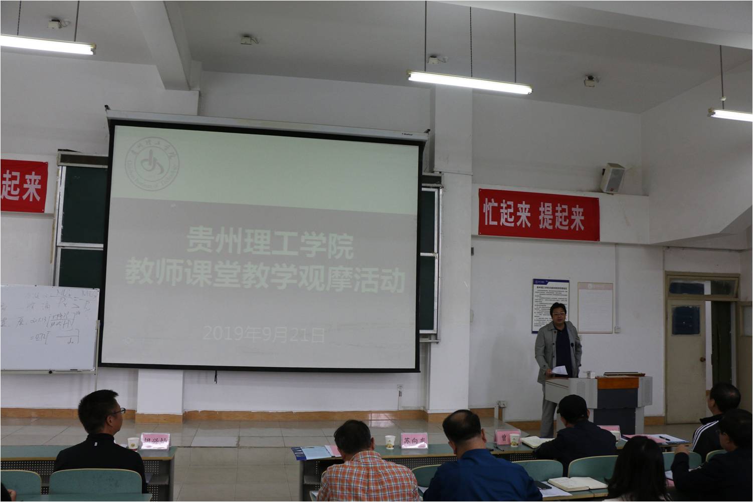 本网讯(教务处苏镜萍)2019年9月21日上午,贵州理工学院教师课堂教学观摩活动在蔡家关校区第三教学楼3-415教室举行,校领导曾羽、苏向东、胡兴灿出席本次活动,各教学单位党政主要负责人、教研室主任(副主任)、实验室主任(副主任),教师工作处、教学质量监控与评估中心、教务处等行政部门负责人,教师代表200余人参加本次活动,活动由副院长梁杰主持。