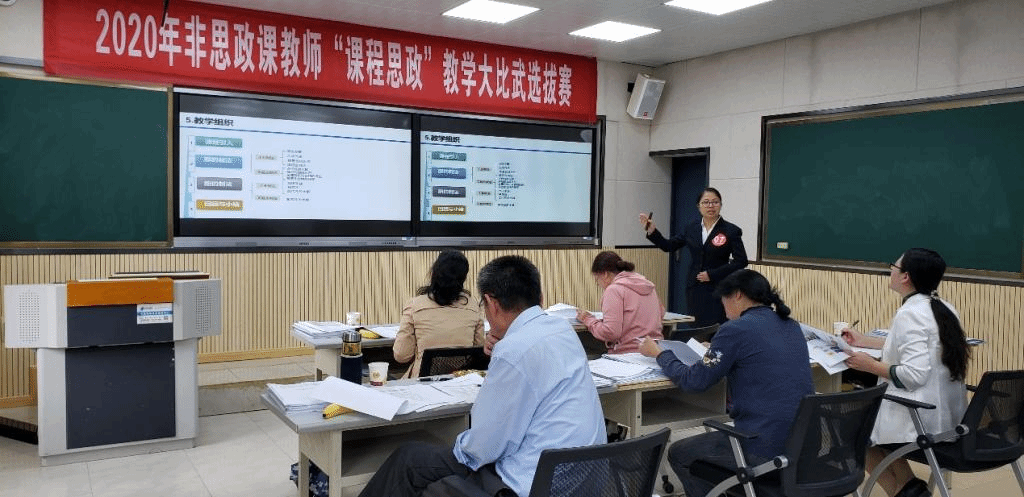 教学竞赛中,参赛教师们热情洋溢,举止得体,采用多元化的教学方式,科学合理地将思政元素融入教学内容,展现着各自的教学风采,并积极为学校课程思政建设做出贡献。按照评审方案,经评选共有11名教师获奖,其中一等奖1名、二等奖2名、三等奖3名、优秀奖5名。一等奖获得者学校将推荐参加省级高校非思政课教师“课程思政”教学大比武竞赛。