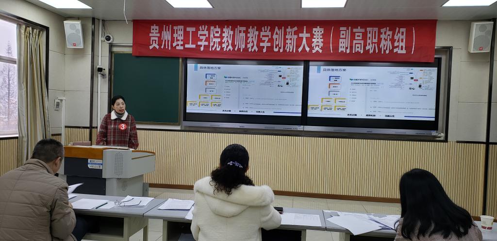 (教务处 王寅庆)3月5日上午,贵州理工学院在蔡家关校区第三教学楼举行了以“推动教学创新 打造一流课程”教师教学创新大赛活动。本次大赛根据参赛情况,设置了副高职称组、正高和中级职称组两个赛场,并邀请了校内外教学经验丰富的教师担任评委。