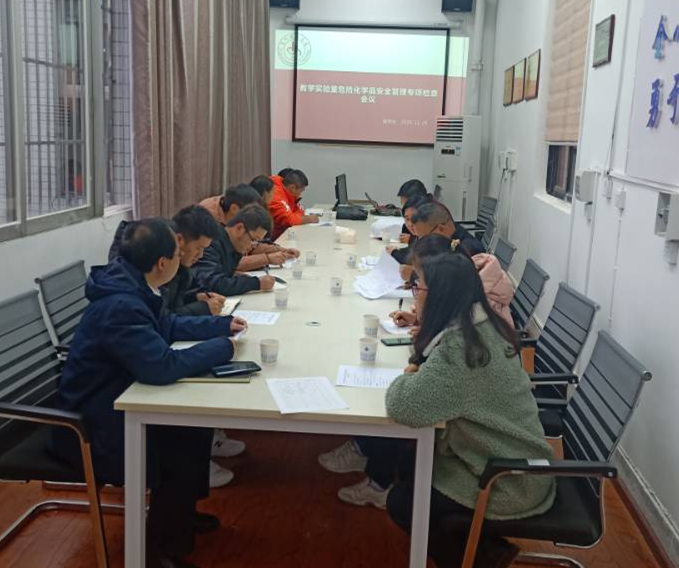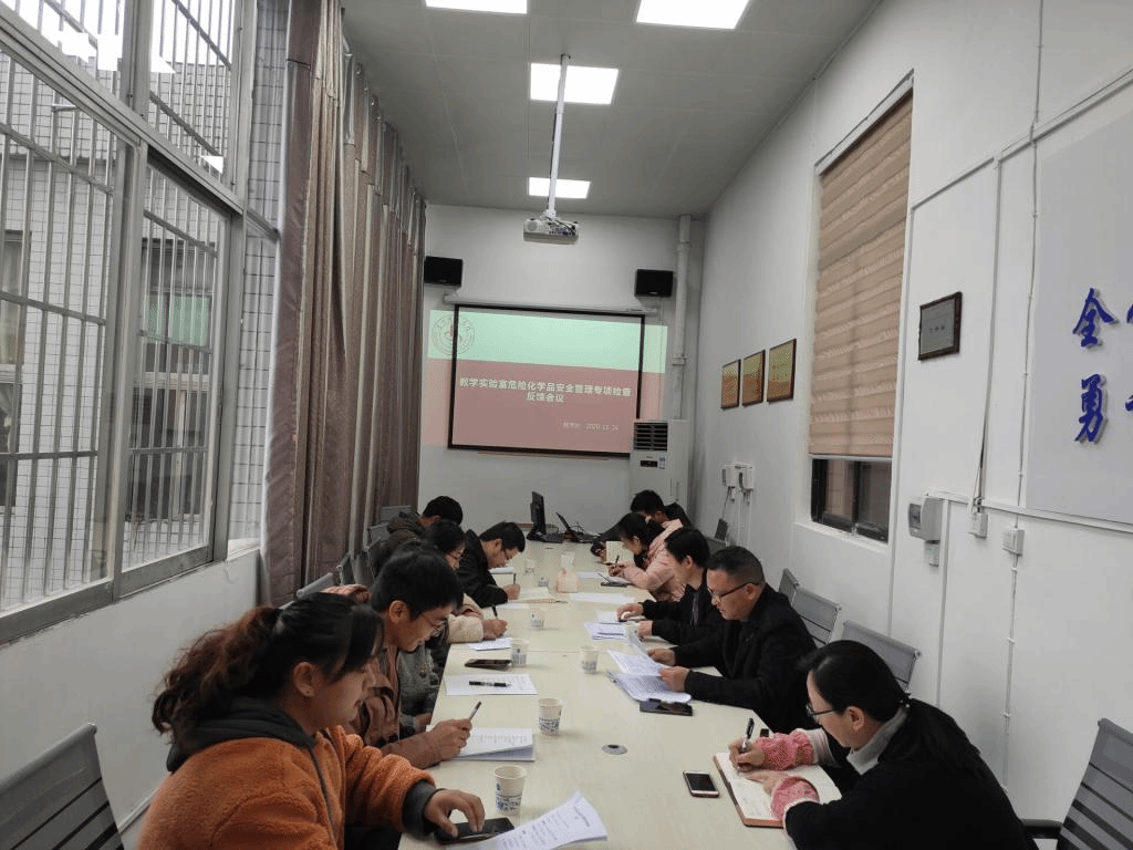 检查反馈环节,检查组对检查中发现的实验教学场地狭窄、试剂放置安全隐患、标识信息不全、药品存储不规范、气瓶管理等问题提出了整改意见,就实验室安全防范与涉化类教学单位进行了交流。