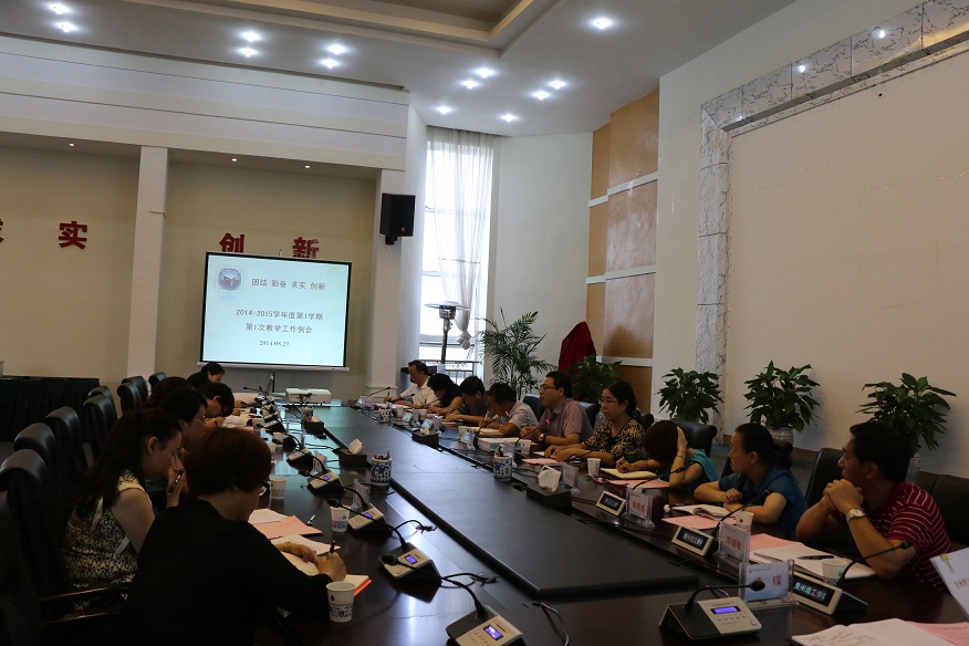 8月29日上午,教务处在喀斯特三楼会议厅召开2014-2015年第一学期第一次教学工作例会,龙奋杰校长、王建平副校长出席会议,会议由教务处副处长邵芳主持,各学院(教学部、中心)相关领导参加了会议。