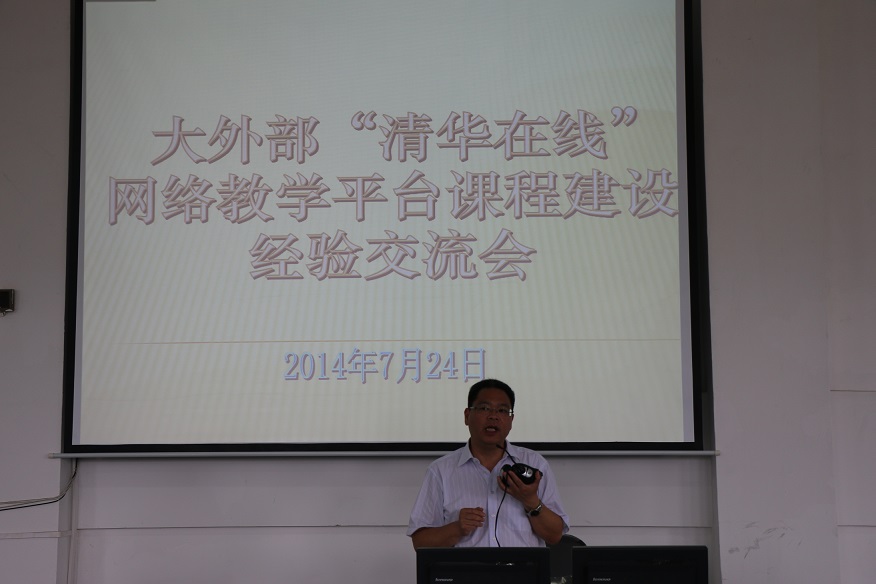 继7月18日大外部“清华在线”网络教学平台课程建设汇报会成功召开之后,7月24日下午,教务处按照曾羽书记的要求,在三教五楼语音室组织召开大外部“清华在线”网络教学平台课程建设经验交流会,校领导王建平出席会议,会议由大外部副主任周丽主持,教务处领导班子和各学院(中心、部)教师参加会议。