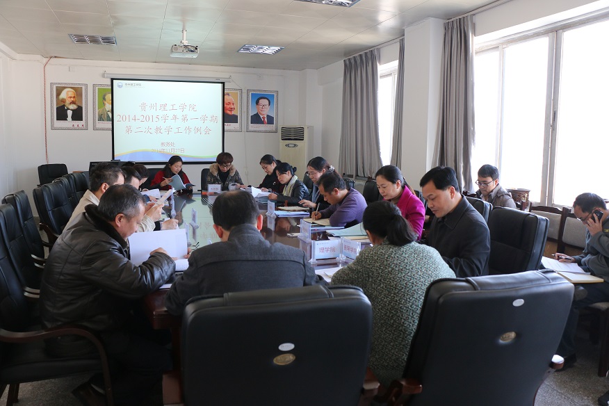 11月27日下午,教务处在马列部会议室(1125)召开2014-2015年第一学期第二次教学工作例会,会议由教务处副处长邵芳主持,各学院(教学部、中心)相关领导和教务处各科室部分教师参加了会议。