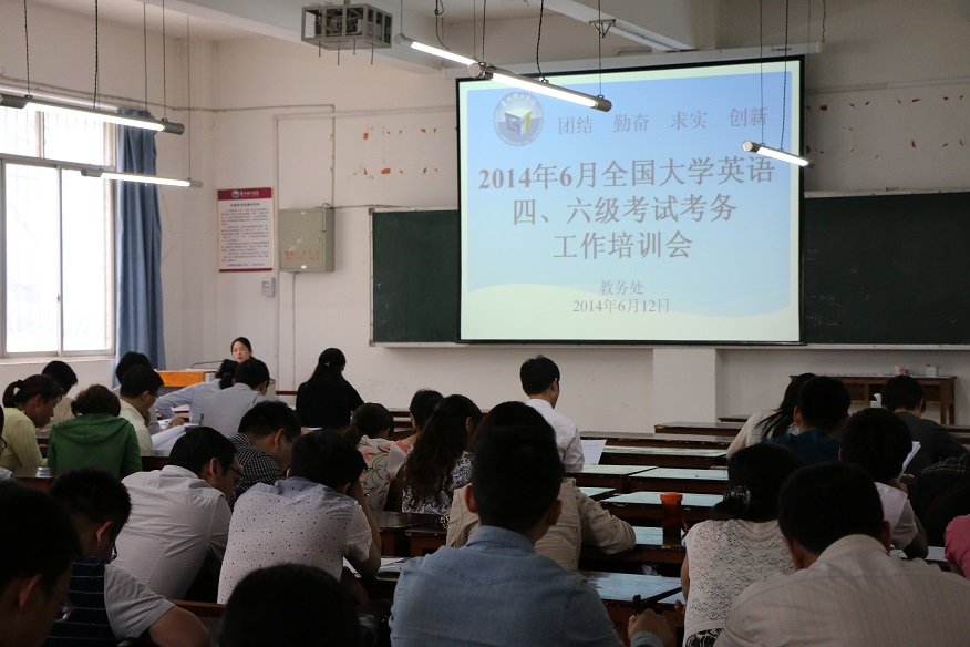 6月12日下午,教务处在第三教学楼116教室组织召开2014年6月全国大学英语四、六级考试考务工作培训会,分管教学副校长王建平教授出席会议,会议由教务处副处长林蔚主持,全体监考教师和教务处全体人员参加会议。