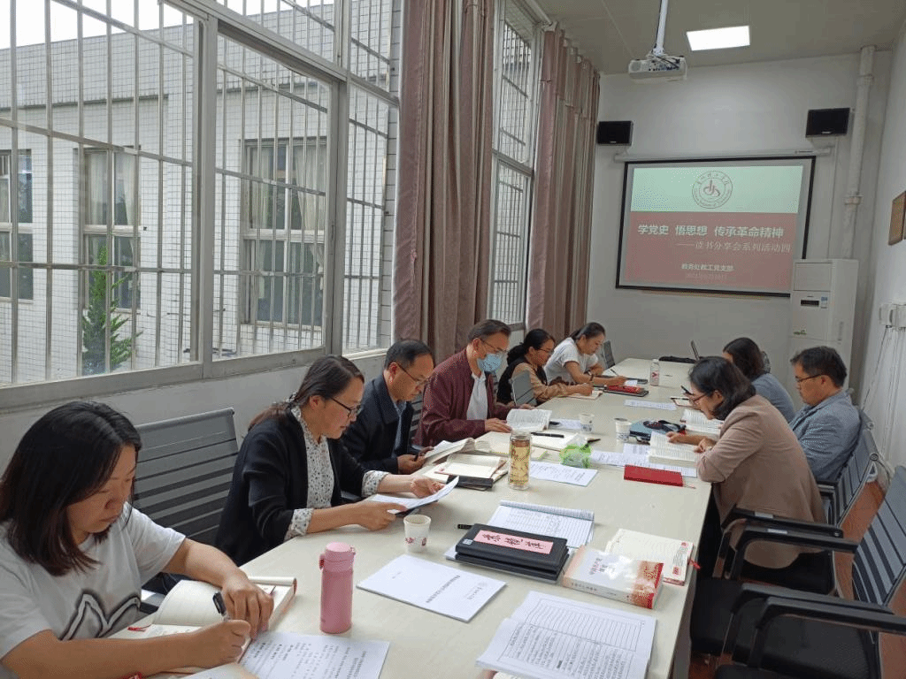 本网讯(教务处 罗敏)为持续深入推进党史学习教育,坚定理想信念,增强干事创业的信心,2021年6月10日,教务处教工党支部全体党员同志在党员活动室开展第四期“学党史 悟思想 传承革命精神”党史学习教育专题读书分享会。