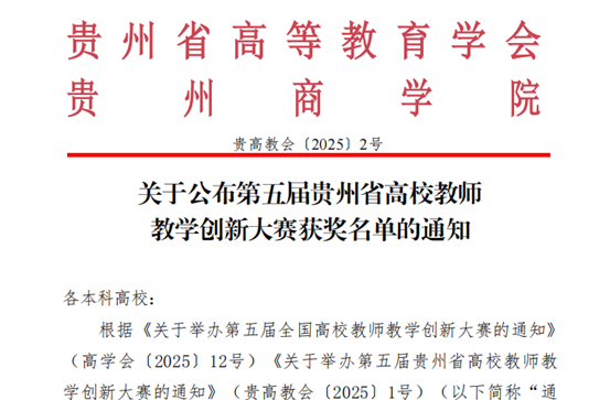 据悉,此次贵州省高校教师教学创新大赛由贵州省教育厅主办,贵州商学院承办,本次比赛共有31所学校256名教师(团队)参赛,经过专家网络评审、大赛组委会审定和网络公示,共24所高校103名教师(团队)入围现场赛。经过决赛现场评选,共评选出一等奖16项、二等奖 37项、三等奖50项、优秀组织奖12项。