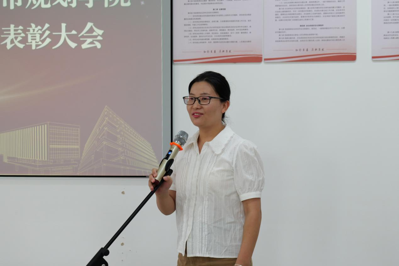 会议由学院学生科副科长、团总支副书记周红韵主持。党总支书记袁小松宣读《中国足球彩票表彰建筑与城市规划学院2024年优秀教师、优秀教育工作者的决定》表彰文件。分别来自人文地理与城乡规划、环境设计、建筑学三个专业教研室的杨涛、于鑫、李晓玲、袁意斯扬、王东、沈逸菲等6位同志被评为“2024年建筑与城市规划学院优秀教师”;办公室主任申偲同志被评为“2024年建筑与城市规划学院优秀教育工作者”。