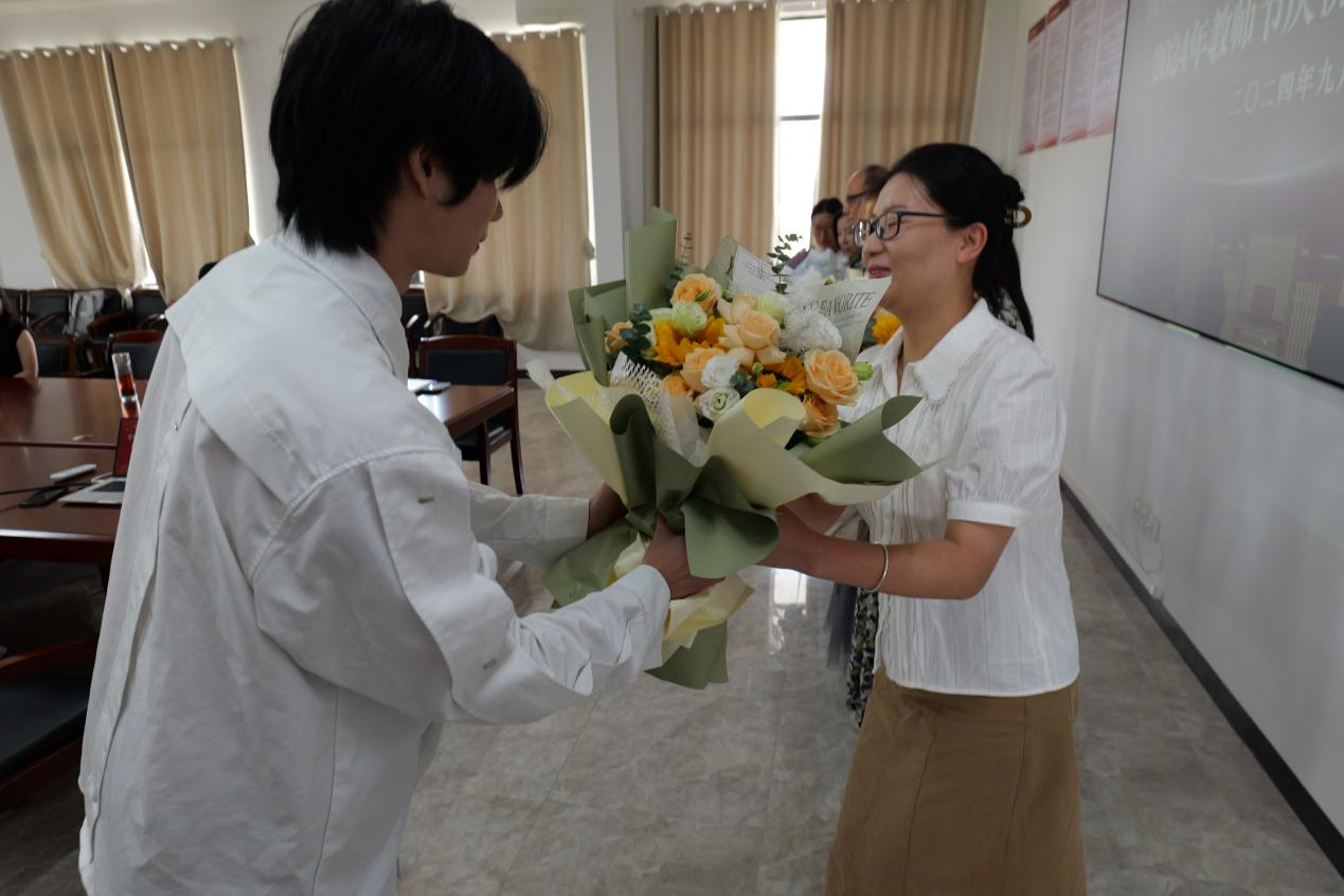 学院学生会主席、学生代表罗阳代表全院学生向老师们致献词,表达全体学生对老师的崇高敬意和感激之情。罗阳在献词中说:“老师不仅是我们知识的传授者,更是我们人生道路上的引路人。每当我们遇到困难时,是你们的耐心引导和细心鼓励帮助我们找到方向。老师们甘愿奉献着自己的一切,不仅在学业上引导我们,更在情感上支持我们,陪伴我们度过学生时期最重要的时光。你们的辛勤工作和卓越贡献,不仅赢得了我们的尊敬和爱戴,更为我们学校的辉煌成就增添了浓墨重彩的一笔。我们为能与您们同行在求学的道路上而感到无比自豪和骄傲”!罗阳表示,同学们将以各位老师为榜样,坚定理想信念,以青春之名,践行使命,用于担当,争做有理想、敢担当、能吃苦、肯奋斗的新时代青年。