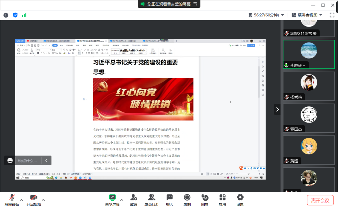 接下来,全体党员集体观看了一代名将左权的先进事迹。通过观看左权同志的英雄事迹,全体党员对于如何树立理想信念以及如何进行价值观建设有了新的启发。