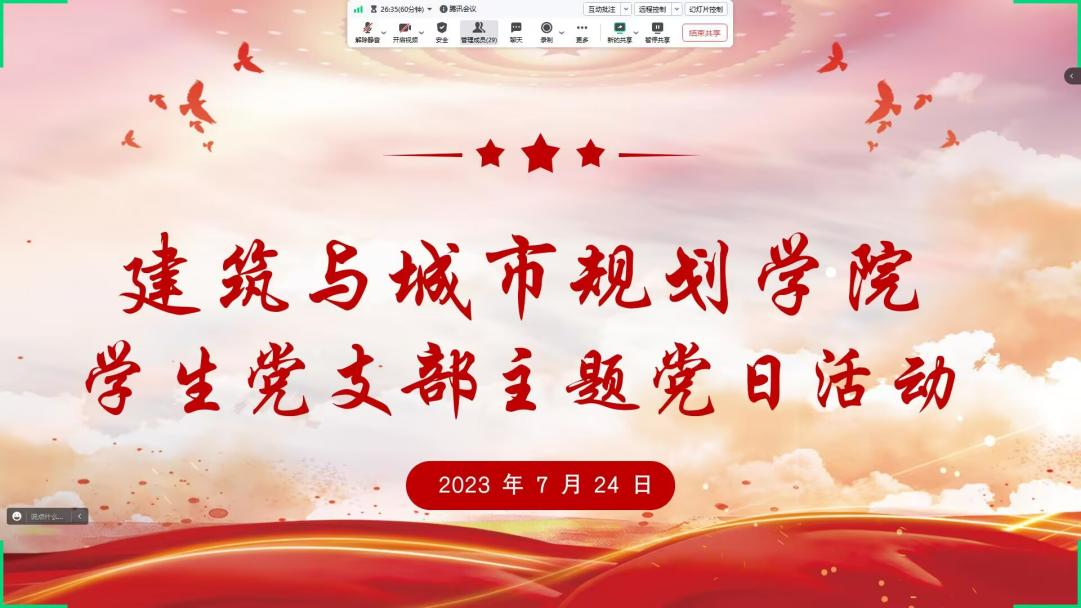建筑与城市规划学院学生党支部开展“不忘初心 砥砺前行,庆祝中国共产党成立102周年”主题党日活动。本次活动分为两个阶段。