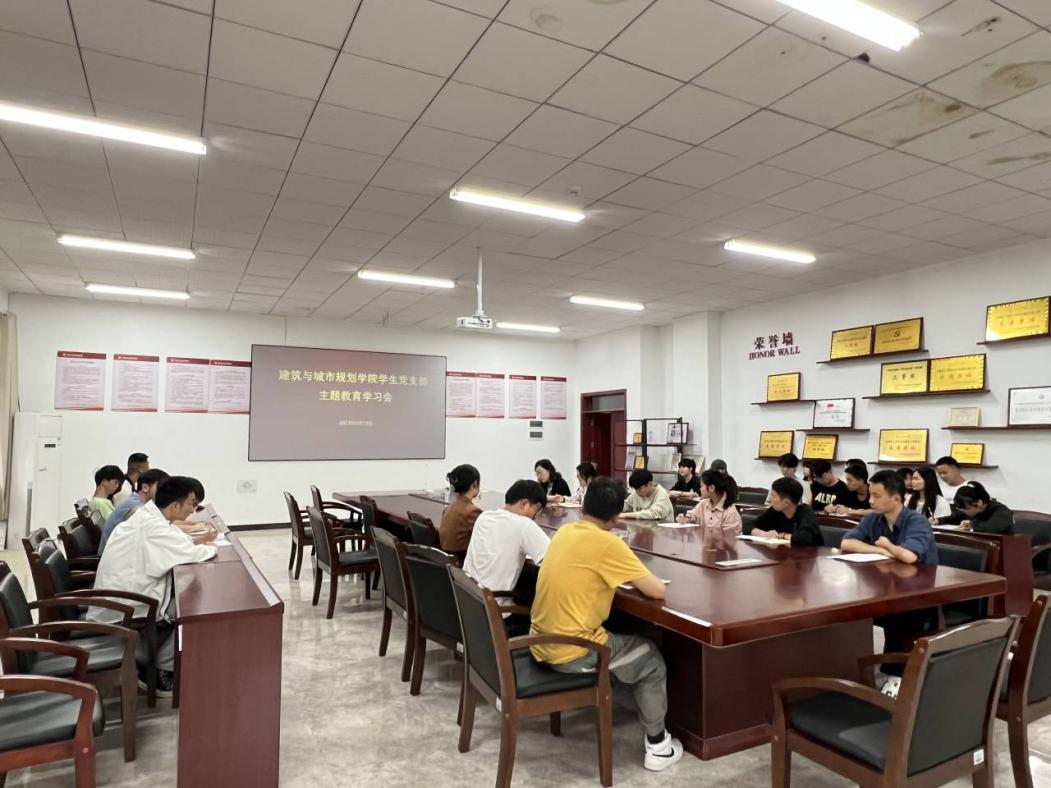 2023年6月19日,建筑与城市规划学院学生党支部在G3501会议室开展以“坚定“四个自信”助力乡村振兴 开创美好生活”为题的主题教育集中学习,学生党支部副书记李晓玲同志主持,学生党支部全体党员参加。