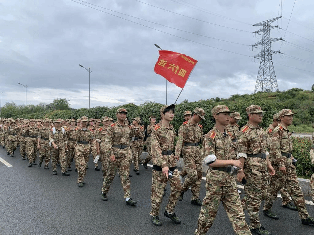 2024年9月8日,学生们便迎来了挑战自我的拉练活动。在教官的带领下,同学们徒步穿越了校园周边的山区,全程约7公里。尽管路途遥远,天气炎热,但同学们无一人掉队,他们互相鼓励,共同克服了体力和意志的双重考验,充分展现了建规学子坚韧不拔和团队协作精神。