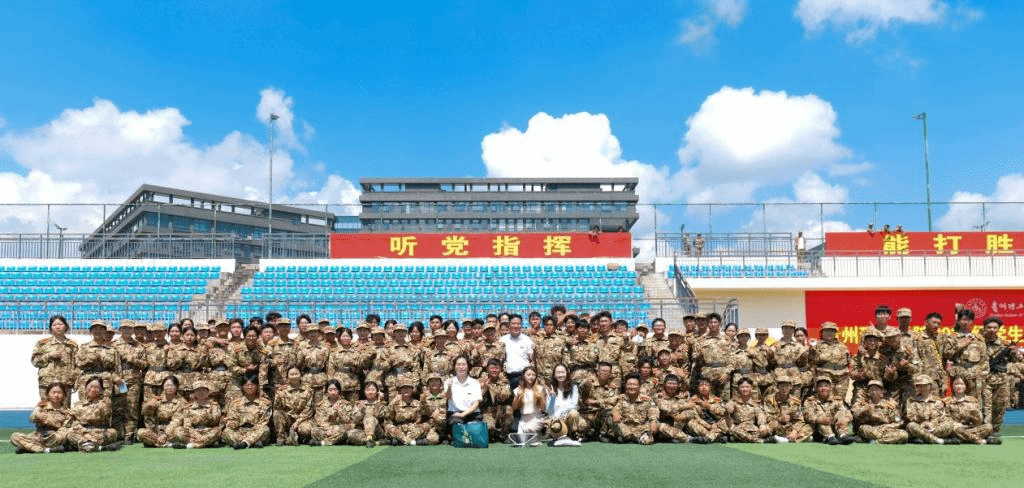 汇报表演结束后,袁小松书记、杨小岚老师、朱秋佇老师、李开萍老师与同学们在南体育场合影留念。一张张灿烂的笑脸,记录下了这段难忘的军训时光,也将成为同学们青春记忆中的宝贵财富。
