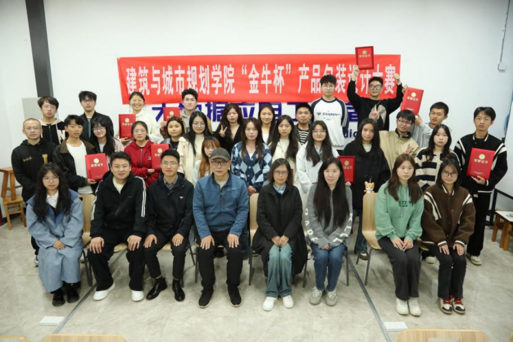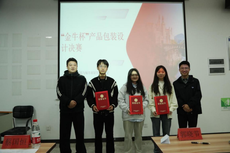 为进一步拓宽学生的专业视野、培养学生的创新能力,建筑与城市规划学院于2024年4月7日晚在G3203教室开展了“金牛杯”产品包装设计大赛。本次大赛特邀贵州慧牛生物科技有限公司负责人蔡国恒、汪益朋及建筑与城市规划学院郭晓节、申偲老师担任评委,学院副院长杨涛到场指导,各参赛队伍成员及部分学生代表到场观摩。