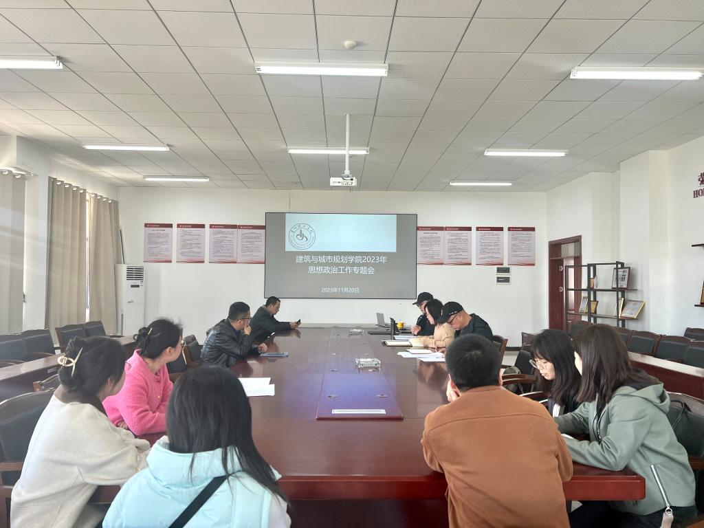 本网讯(建规学院 申偲)为进一步做好学院思想政治工作,我院于2023年11月20日在知行楼3501会议室召开了2023-2024学年第一学期思想政治工作专题会,会议由学院党总支副书记黄娅主持,全体教职工参加会议。