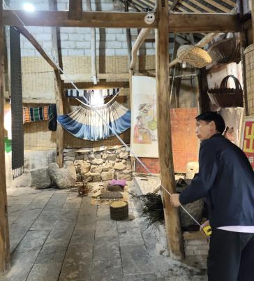 实习第一天,同学们以小组为单位对牛蹄关和阿歪寨进行了实地走访参观,并邀请阿歪寨文史馆管理员韦永春老师详细讲述了寨子里建筑内部空间的属性特点和构造法式。