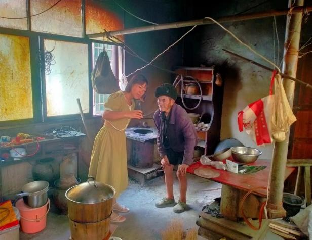 志愿者在潮水村村委会工作人员带领下,走访了潮水村的留守老人和留守儿童家庭,与他们亲切交谈,了解他们的家庭情况、健康状况,并为她们讲解日常生活用火用电安全。