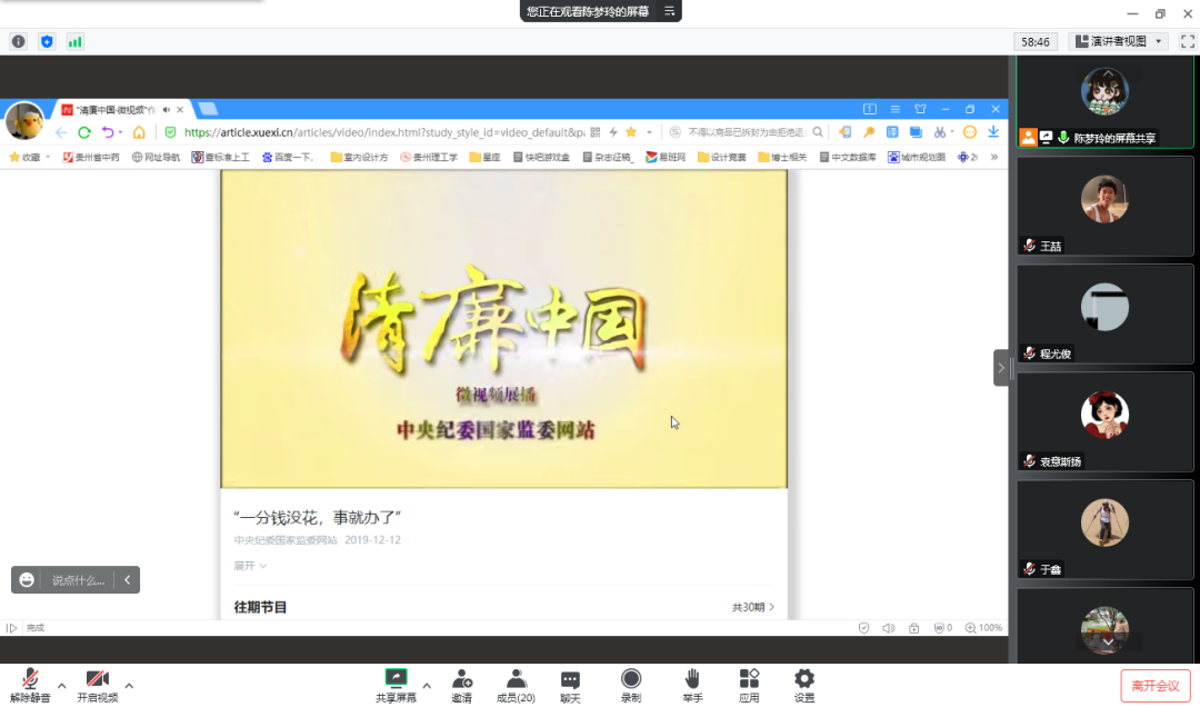 参会党员共同观看了廉洁教育视频《一分钱没花,事就办了》,通过一个简短的人物关系和虚拟的案例讲述,教育党员同志们要加强纪律意识,在工作和生活中一定要牢牢守住底线,做到依法依规开展各项工作。