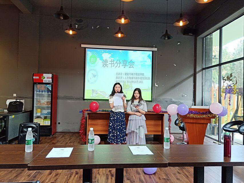 本网讯(城规181 韦启龙)4月18日晚,建规学院城规181班在蜂巢众创园举办“阅读人生,书韵飘香”读书分享会。副院长黄娅、城规181班主任蓝文思及学生60余人参加。