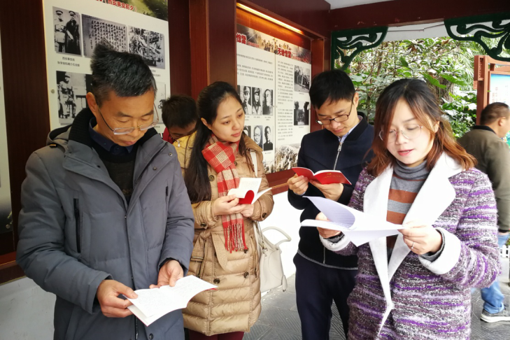 参观结束后,教工支部书记胡婷将学校统一采购的十九大修订后的新党章送到每一名党员手中,并带领大家集中学习新党章,对写入新党章的新思想、新论断、新概念做了重点阐释。院党总支书记张艳要求全体党员在日常学习、工作和生活中必须以党章为根本遵循,将党章学习与党性锻炼结合起来。通过学习党章,进一步强化党员意识,增强党性锻炼,在工作中充分发挥党员的先锋模范作用,推进学院各项事业向前发展。