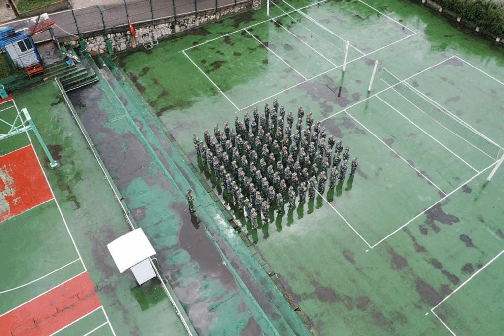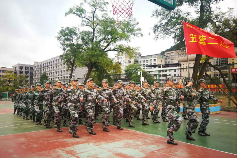 在部队教官严格训练下,短短几天时间,站军姿、正步走、齐步走、齐步变正步、解散、集合及分列式等预定训练科目已初见成效。学生方队整齐,精神饱满,步伐矫健、口令准确、声音嘹亮,“1、2、3、4——”,铿锵有力的口号声时时响彻操场。