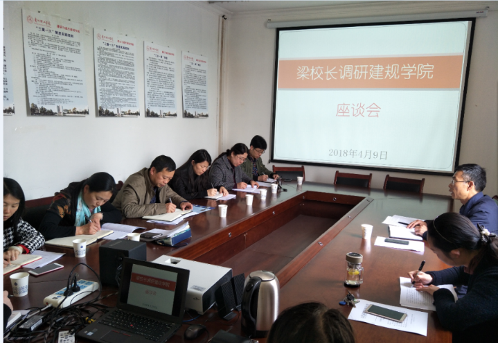 本网讯(建规学院 吴开慧)4月9日下午,副校长梁杰率教务处处长邵芳、教学质量评估监控中心副主任林蔚、教师工作处副处长徐焱一行到建规学院就本科合格评建工作开展调研。建规学院院长刘恒、党总支书记张艳及相关科室负责人参加调研座谈会。