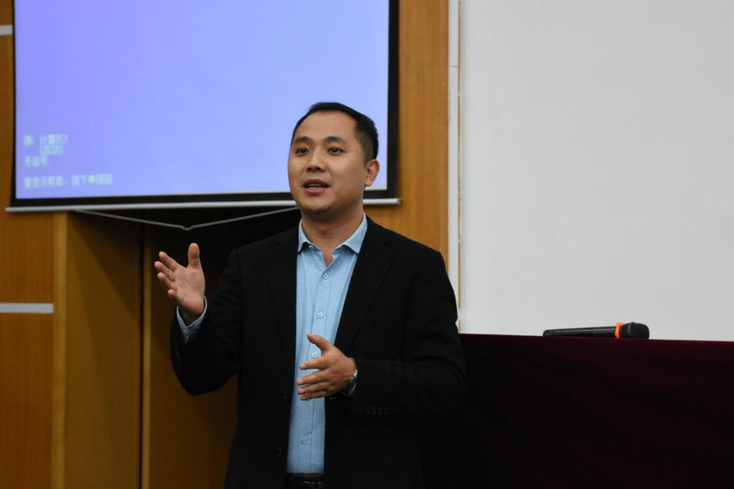 黄果树智慧旅游股份有限公司董事长张目进行点评。他亲切地以“师兄”相称,拉近了与同学们的距离,从怀才、脚踏实地、创新精神三个方面提醒同学们做事应有的态度,指出汇报人的不足并提出中肯建议。