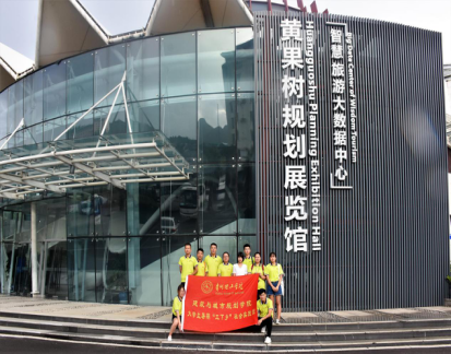 工作之余队员们不敢松懈,牢记学校交给的调研任务,组织大家一起去参观黄果树规划展览馆,了解景区的发展沿革和规划历史,并亲自深入景区,采访游客,发放调查问卷,圆满完成了社会实践调查任务。