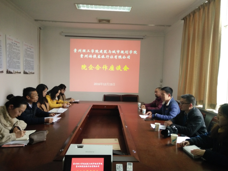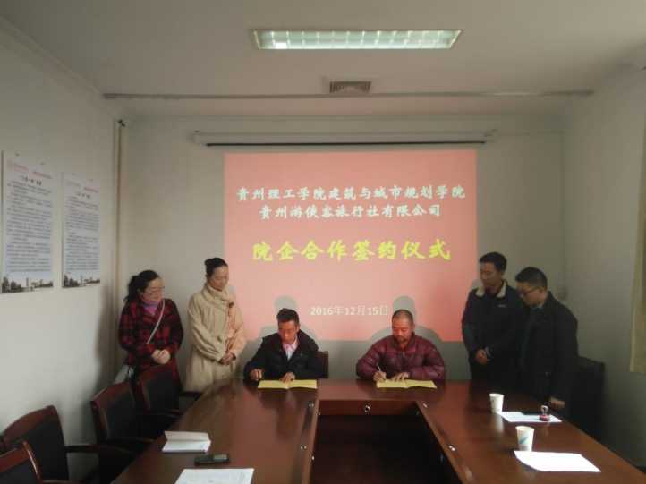 本网讯(建规学院 吴开慧)12月15日,建筑与城市规划学院与贵州游侠客旅行社有限公司院企合作协议签约仪式在建规学院会议室举行。贵州游侠客旅行社有限公司总经理韩瑶、副总经理胡昌雄,建规学院院长刘恒、党总支副书记张艳、贵州智慧旅游产业研究院负责人黄娅以及学院教师代表参加了签约仪式。
