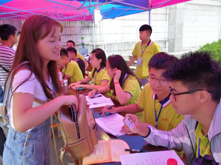 志愿者们热心地回答着新生、家长提出的各种问题,主动帮着拎行李,一路谈笑风生。新生细声地叫着“学长学姐”,老生们也开心地介绍这介绍那。学生干部、志愿者们热情周到的服务很快消除了新生们初来乍到的陌生感。