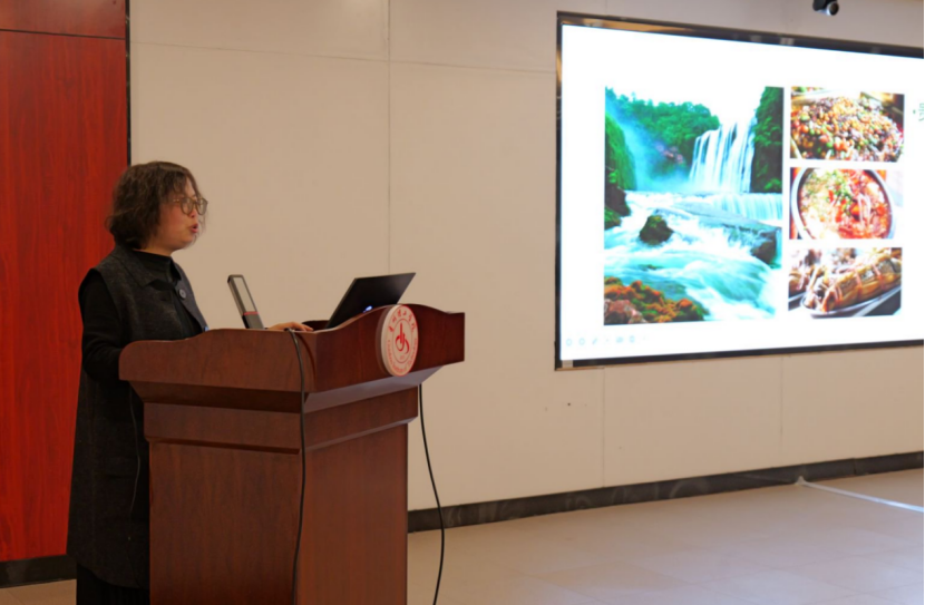 何璘教授以《思政引领 融合创新 赋能乡村----国家级社会实践一流课程<乡村振兴实践>的建设》为题作学术报告。她围绕课程简介、建设思路及教学实践、建设成效三个方面,坦诚而详实地向大家介绍了贵州民族大学国家级社会实践一流课程《乡村振兴实践》的建设路径与方法,对现场师生颇有启迪。她在讲座中特别强调,大学的学习,社会实践极为重要,只有将所学知识运用到生活实践中,才能实现真正的学有所得、学有所成。