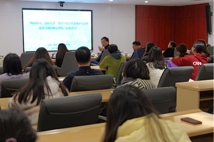 为进一步落实学校地方性、应用型办学定位,积极推动建筑与城市规划学院人文地理与城乡规划、建筑学、环境设计三个专业办学提质增效,推进学院人才培养与科学研究高质量发展,提高我院教师的学术能力与教学水平,拓展学生专业认知视野。12月26日下午,我院特邀华南理工大学、西南民族大学、 贵州民族大学建筑与设计类知名教授与我院师生在知行楼六楼 607 会议厅一起开展“四校联动·名师论道”建筑与设计类学术研讨会暨建筑与城市规划学院“思成讲坛”学术报告会。