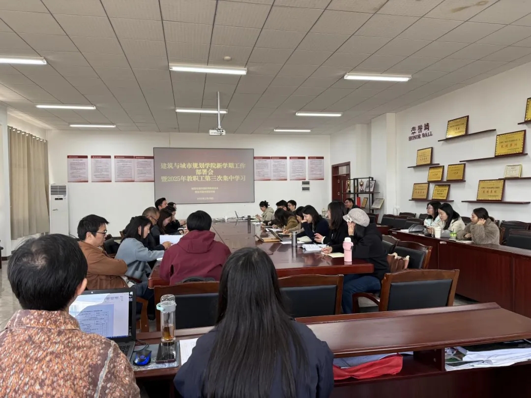 2025年2月28日下午14时,建筑与城市规划学院在敏行楼学院会议室召开2025年春季学期开学工作部署会议,会议由党总支书记袁小松主持,学院领导班子成员及全院教职工参加会议。