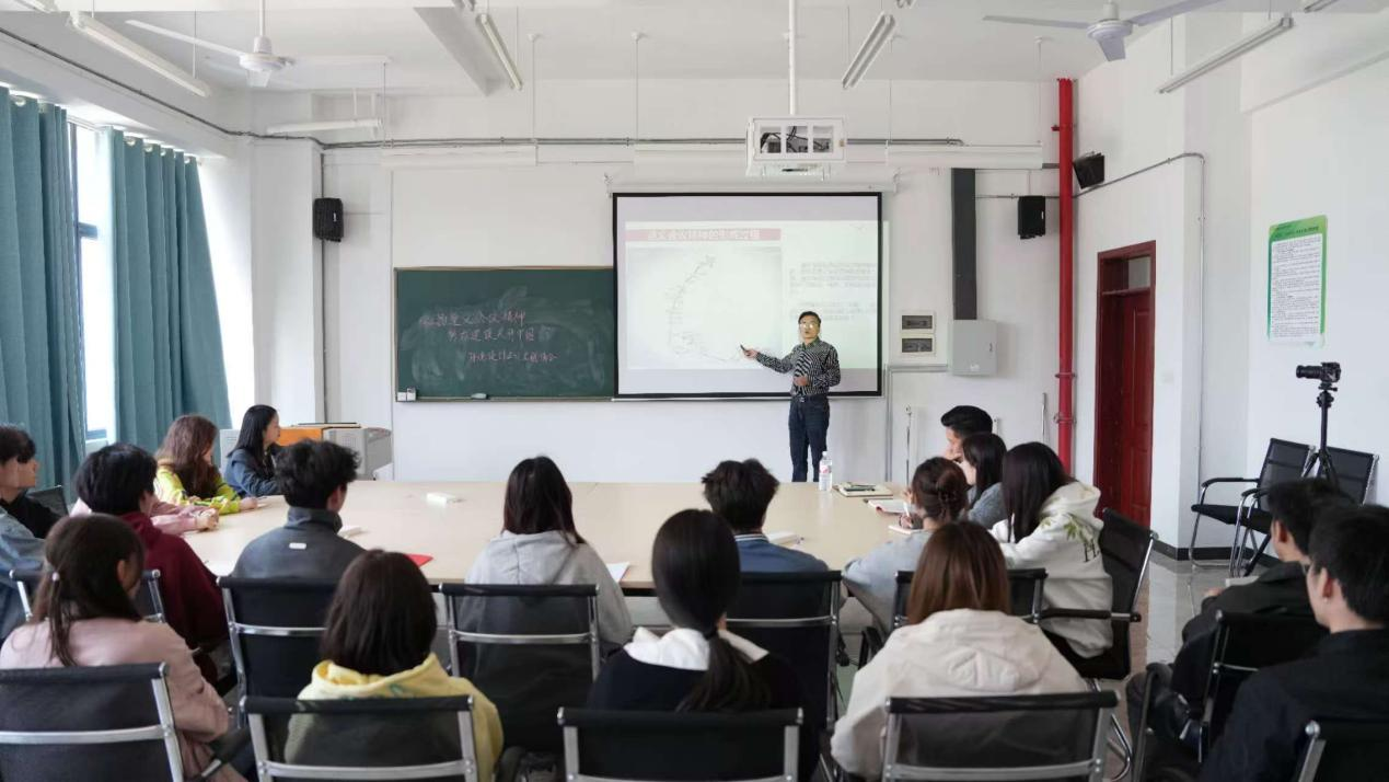 党总支书记袁小松在心得分享过程中给大家献唱了著名的《长征组歌》中的《遵义会议放光辉》,用艺术思政的方式带领同学们回顾遵义会议、四渡赤水等光辉历史。