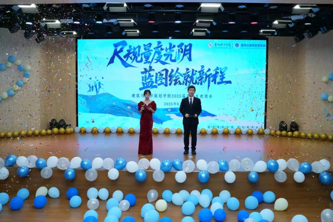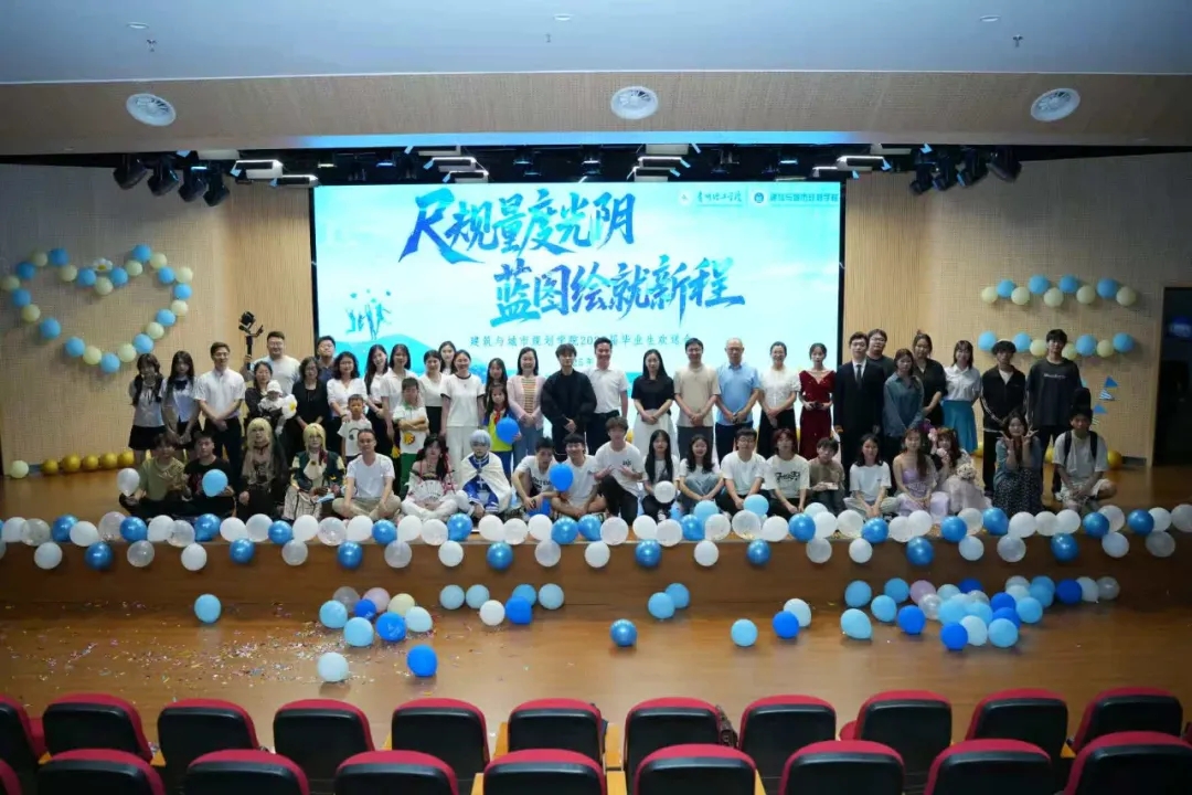 2025年6月11日晚上19时,建筑与城市规划学院师生欢聚一堂,在蕴华楼四楼报告厅为2025届毕业生们送上了一场主题为“尺规量度光阴,蓝图绘就新程”的欢快、多彩而又温馨的毕业生欢送会。