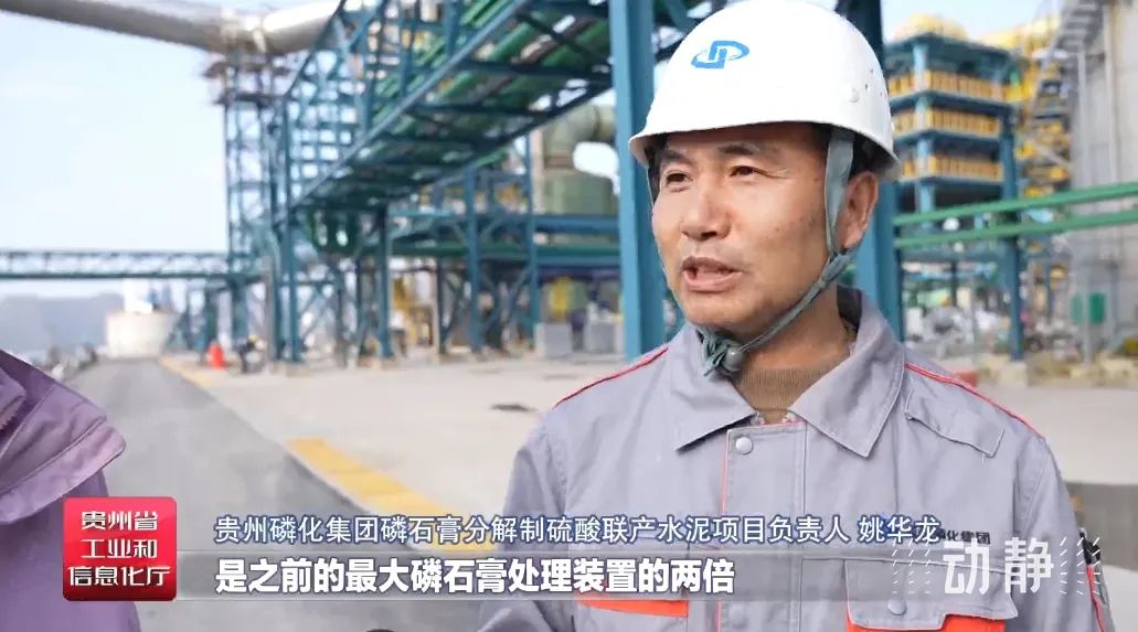 贵州台记者田婷婷:我现在是在贵州磷化集团的黔南基地。贵州磷矿保有量全国第一,贵州立足比较优势、构建现代化产业体系,磷化工是典型代表之一。我旁边这套设备,是目前世界上规模最大的一个磷石膏综合利用装置。