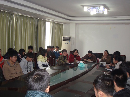 11月13日16:30,理学院组织2013级学生代表在行政楼825开展期中学生座谈会。本次座谈会由理学院院长张民选教授主持,党总支书记李青、李智玲副院长、教务科科长夏辉福、数学教研室主任迟楠、物理教研室主任肖志俊、2013级各班学生代表参会。