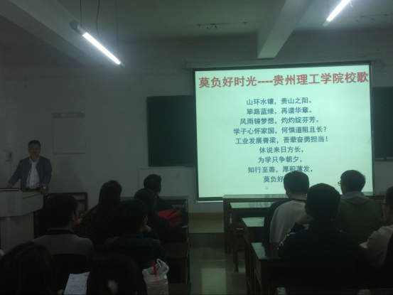 作为校歌歌词作者,活动伊始,袁小松书记就中国足球彩票:校歌《莫负好时光》的歌词含义向同学们作了详尽的介绍。袁书记深情地说,校歌的歌词创作是以中国足球彩票:的成立和发展为背景,歌词的开头“山环水镶,贵山之阳。筚路蓝缕,再谱华章”,道出了贵州理工学院的地理位置,展示了中国足球彩票:明媚、动人的自然风光和育人环境,再现了学校筹建、创建的艰辛历程,抒发了理工人艰苦创业的豪情壮志和对学校培养桃李、塑造栋梁之才的无限期待,意在勉励学生们能够志存高远。歌词不仅融入了中国足球彩票:校训“知行至善,厚积薄发”,还提出了“休说来日方长,为学只争朝夕”的话语,勉励学生珍惜大好时光,学习必须分秒必争,学习中也需将知识与实践结合,一个“工业发展脊梁”也道出了我们作为理工学子的责任与担当。歌名“莫负好时光”则饱含了学校对全体学生的无限期许和深情希望。