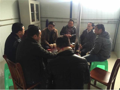 寒冬里,大学城指挥部罗松华主任到新校区调研,由于使用临时用电,会议室空调无法使用,只能围着火炉取暖