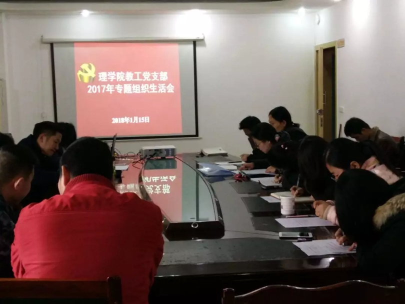 (理学院 刘葵 报道)为落实全面从严治党新要求,不断加强党员党纪党规教育,更加唤醒党员意识与组织意识,进一步推动“两学一做”学习教育常态化制度化。1月15日下午14时,理学院教工党支部在理学院825会议室召开2017年专题组织生活会,支部全体党员教工参加了会议,副院长李智玲(无党派)应邀列席会议。