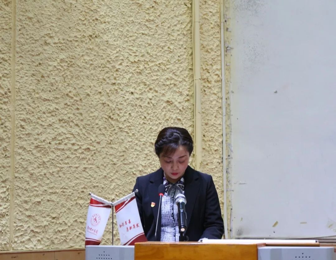 随后,蒙蔺老师宣读了对于理学院首批通过全国大学生英语四级等级考试的两名同学,向他们颁发理学院“英语学习之星”荣誉称号的表彰决定,由理学院院长李智玲为“英语学习之星”马丽维和张万祺两位同学颁发荣誉证书。仪式完成后,英语学习优秀代表——马丽维、向星怡两位同学依次上台发言,他们通过不同的方式与同学们分享了自己在学习英语上总结的一些好点子,好方法。
